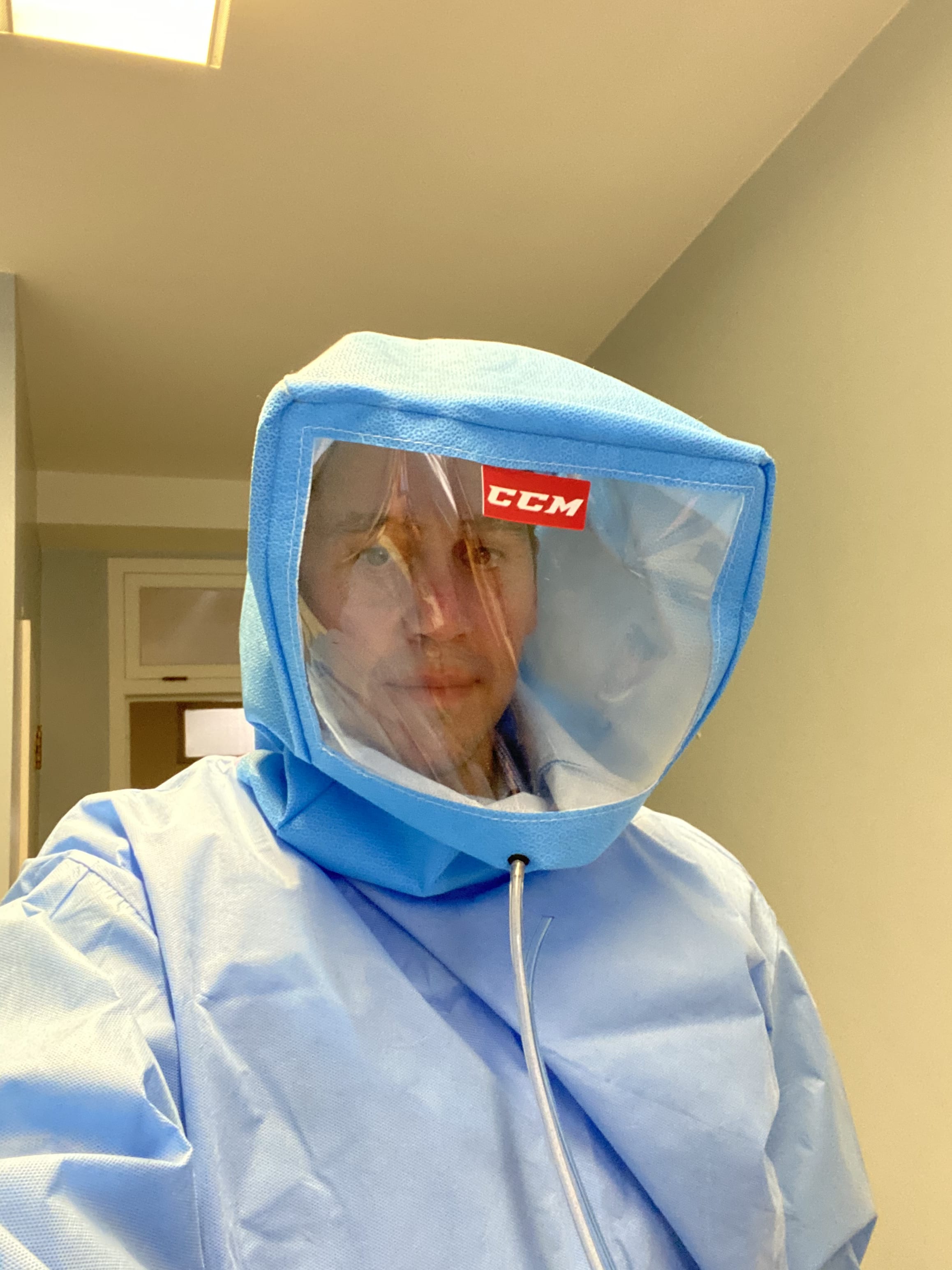 He began to look for solutions to address the PPE gap, but nothing he deemed appropriate was accessible. So, he took matters into his own hands by creating a new disposable protective surgical hood that would act as a viable—if not more effective—alternative to the N95 mask, as it is not dependent on a correct fit for the user’s face. Providing complete coverage for the entire head and face, the hood uses positive air pressure, which augments the protective index of the device by a factor of 100. The design further allows for safe removal, a critical period when many PPE users contaminate themselves.