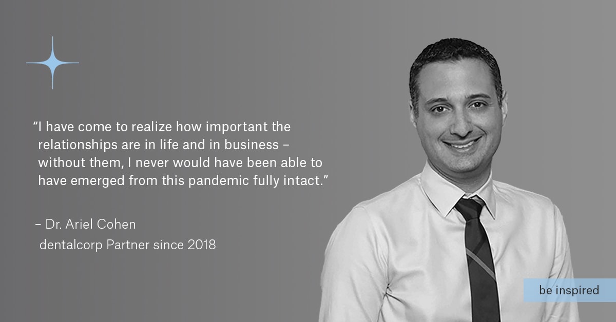 Ariel largely credits being a part of a large network for helping to ease the burden of operating a small business during this pandemic. “During the pandemic, all I could think about was how lucky I was to have partnered with dentalcorp when I did,” he says. “The timing truly could not have been any better, and it has proven to be one of the best decisions I have ever made. Without our partnership, I never would have been able to deal with the many staffing, operational and financial challenges our practices faced during this crisis.”