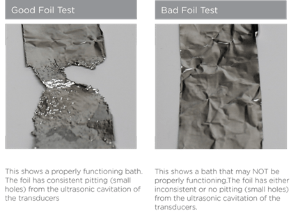 8. If the ultrasonic cleaner failed the test, perform a second test using new foil